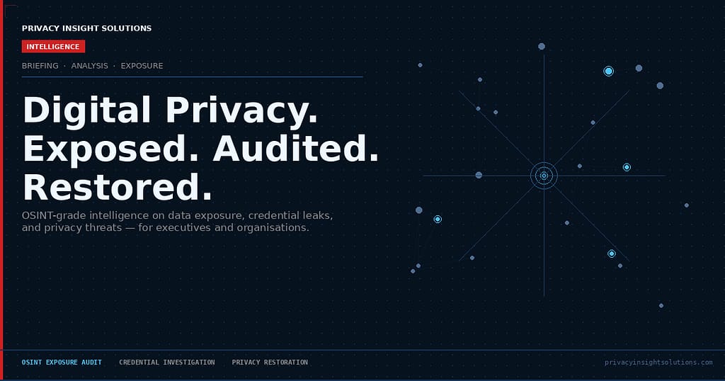The most significant gap in any self-directed removal effort is information you cannot find yourself. A Google search for your own name reveals only what Google has indexed. It does not show what exists in stealer logs from infostealer malware — credentials, session cookies, autofill data traded on Telegram channels and dark web markets. It does not show what a professional OSINT investigation surfaces by cross-referencing usernames across platforms, correlating metadata, mapping your social graph, or checking commercial intelligence databases like LexisNexis and Thomson Reuters CLEAR that individuals cannot access directly.