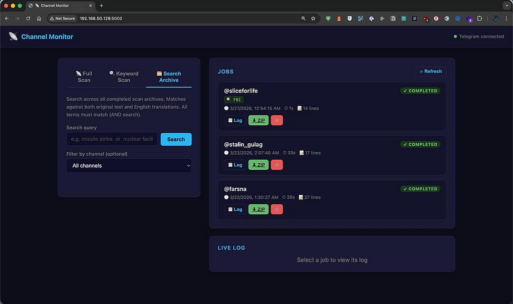 Telegram Channel Monitor Gets Keyword Scanning and Archive Search was originally published in OSINT Team on Medium, where people are continuing the conversation by highlighting and responding to this story.