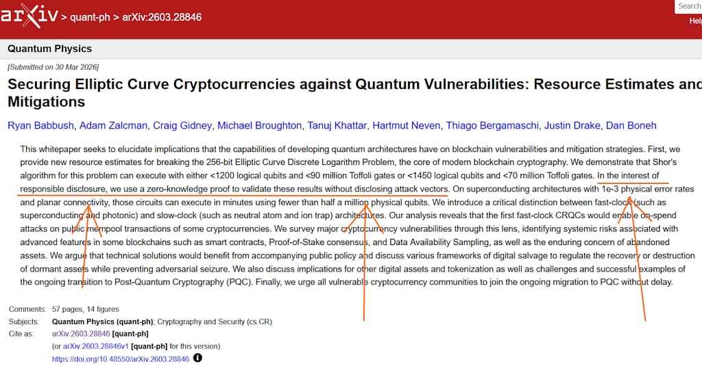 De arXiv-identifier 2603.28846 verwijst naar een recent whitepaper getiteld “Securing Elliptic Curve Cryptocurrencies against Quantum Vulnerabilities: Resource Estimates and Mitigations”, gepubliceerd op 1 april 2026. [1, 2, 3]